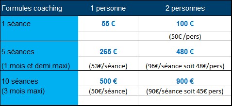 Pour deux personnes , pour 10 séances, vous ne payez que 22.5 €/séance/personne